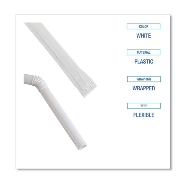 Whether you are looking to provide safety, fun or convenience for your customers, these sturdy, wrapped flex straws are guaranteed to satisfy any need. They are individually wrapped for increased hygiene. These straws are perfect for offices, schools, restaurants and events. Great for use with kids’ cups, take out drinks or healthcare applications, these classic white flex straws can bend to fit any situation!